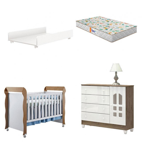 Com a chegada do bebê, é preciso escolher móveis de qualidade para montar o quartinho. Pensando nisso preparamos para a mamãe várias opções de produtos para deixar o ambiente aconchegante e moderno. Berço Americano Mirelle na cor Branco Acetinado Amadeirado que transforma - se em Mini Cama aumentando a vida útil do Móvel. Cômoda Selena possui 1 Porta com Prateleira 4 Gavetas e um lindo design deixando o ambiente mais sofisticado. Trocador Juju fabricado pela Reller, pensado para oferecer mais conforto para a mamãe e o bebê evitando dores nas costas e ainda acompanha um lindo colchão Gazin, oferecendo conforto nas noites de sono do bebê. Veja mais detalhes desses produtos e aproveite nossos precinhos!