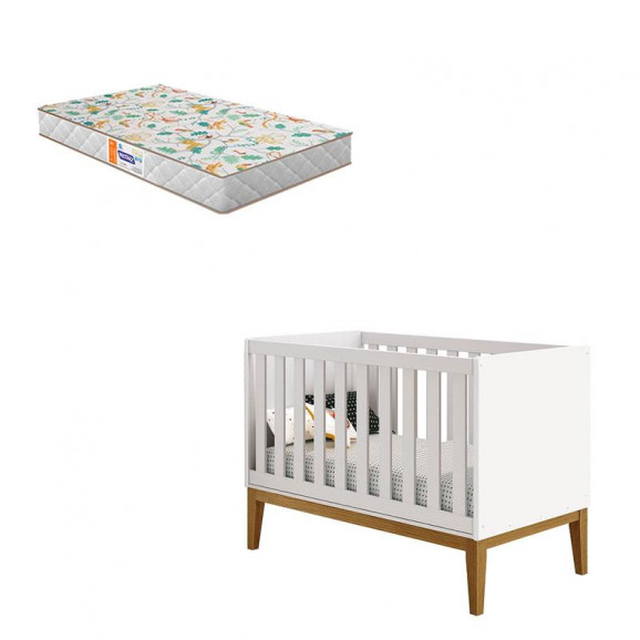 Berço Americano New Classic Branco com Pés Madeira e Colchão Gazin – Reller