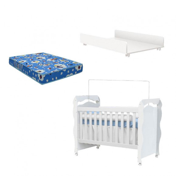Olá mamãe! Esta com Dúvida para escolher os móveis para o quartinho do bebê? Você procura por Produtos com qualidade e melhor preço? Pensando nisso separamos para você esse lindo Berço New Nanda com Formato Americano que transforma –se em Mini Cama aumentando a vida útil do móvel , Trocador Juju na cor Branco Acetinado que oferece conforto na hora de trocar a fraldinha do bebê e Colchão Ortobom, desenvolvido para oferecer noites de sono mais tranquilas para o seu pequeno. Confira!