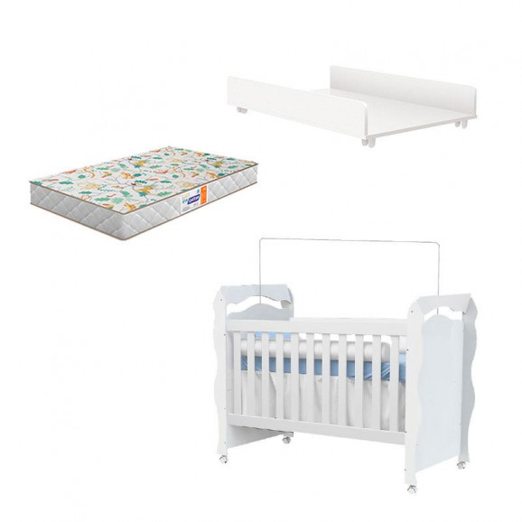 Olá mamãe! Esta com Dúvida para escolher os móveis para o quartinho do bebê? Você procura por Produtos com qualidade e melhor preço? Pensando nisso separamos para você esse lindo Berço New Nanda com Formato Americano que transforma–se em Mini Cama aumentando a vida útil do móvel , Trocador Juju na cor Branco Brilho que oferece conforto na hora de trocar a fraldinha do bebê e Colchão Gazin, desenvolvido para oferecer noites de sono mais tranquilas para o seu pequeno. Confira!
