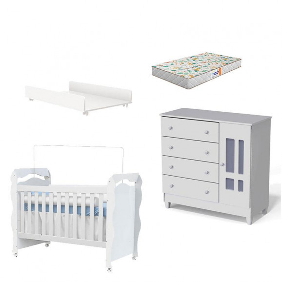 Olá mamãe! Quer uma ajudinha para montar o quartinho do seu bebê? Sabemos que você procura por móveis com qualidade e lindo design que deixam o ambiente mais aconchegante e sofisticado. Pensando nisso, separamos diversos modelos para que você não tenha mais duvidas. Berço com formato Americano New Nanda que transforma – se em Mini Cama acompanhando as fases de crescimento do seu pequeno, Trocador Juju na cor Branco Brilho desenvolvido com o propósito de oferecer mais conforto para a mamãe na hora de trocar o bebê. Cômoda Ariel, possui 4 Gavetas e 1 Porta com prateleira, um amplo espaço para facilitar na organização dos acessórios e roupinhas e ainda acompanha um lindo Colchão Gazin, para proporcionar uma noite de sono mais tranquila para o Neném. Veja mais detalhes desses Produtos, Aproveite!