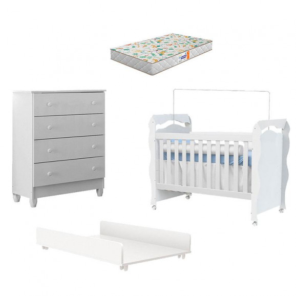 Na hora de montar o quartinho do bebê, você mamãe procura por conforto, qualidade preço baixo. Pensando nisso oferecemos a você uma variedade de produtos que vão te auxiliar nessa tarefa tão importante. Berço Americano New Nanda na cor Branco Brilho possui Varão para mosquiteiro com a opção Mini Cama acompanhando o crescimento do seu pequeno, Trocador Juju desenvolvido para oferecer praticidade e conforto na hora de trocar o bebê. Cômoda Ariel, que foi fabricada com matéria prima de alta qualidade para que o produto seja duradouro e ainda acompanha um lindo colchão Gazin trazendo tranquilidade para as noites de sono do pequeno. Aproveite!