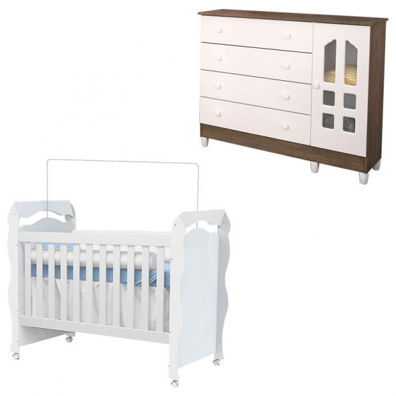 Berço Americano New Nanda e Cômoda Gran Selena Branco Acetinado – Carolina