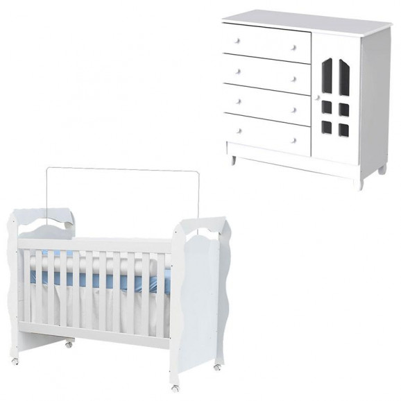 Berço Americano New Nanda e Cômoda Infantil Selena Branco Brilho – Carolina