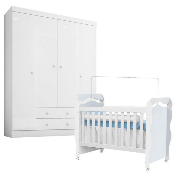 Chegou a hora de escolher os móveis para o quartinho do bebê, temos uma linda opção para você! Guarda Roupa 4 Portas desenvolvido pela Incorplac e Berço Americano New Nanda fabricado pela Carolina Baby, pensando na praticidade e conforto do bebê, conta com lindo design na cor Branco Brilho proporcionando modernidade e tranquilidade ao ambiente. Aproveite e garanta já este lindo conjunto!