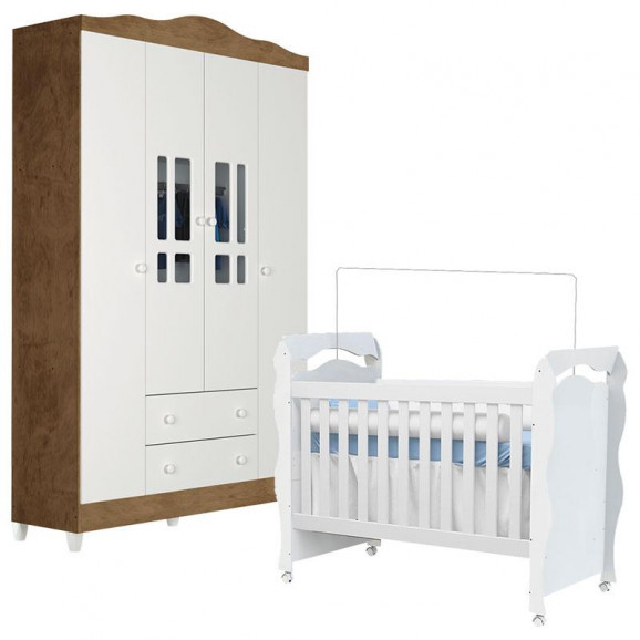 Berço Americano New Nanda e Guarda Roupa Infantil Ariel 4 Portas Branco Acetinado – Carolina