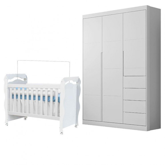 Berço Americano New Nanda e Guarda Roupa Infantil Eloá Branco Acetinado – Phoenix Baby