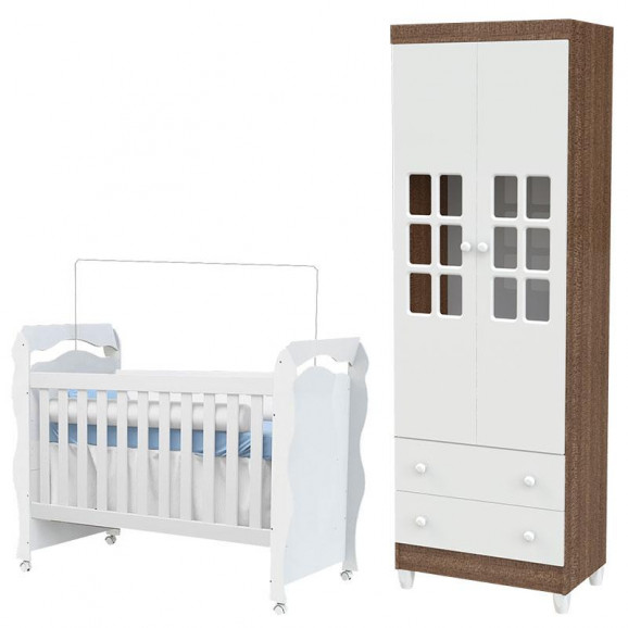 Berço Americano New Nanda e Guarda Roupa Mariah 2 Portas Branco Acetinado – Carolina