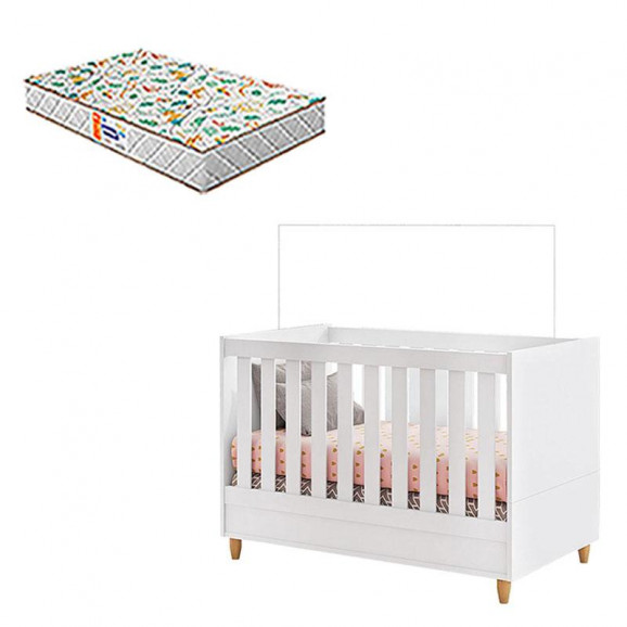 Berço Americano Retro Milka Branco Acetinado com Colchão Gazin – Móveis Estrela