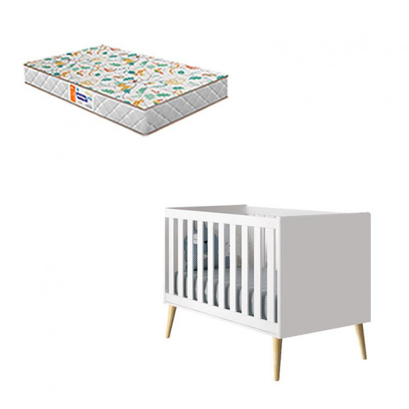 Berço Americano Theo Branco Pés Madeira Natural com Colchão Gazin – Reller