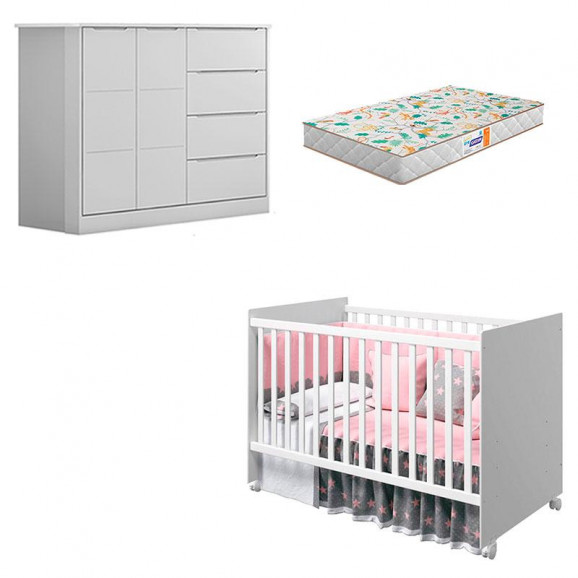 Chegou o momento de montar o quartinho do bebê, então você precisa de móveis de qualidade e durabilidade. Pensando em corresponder suas necessidades apresentamos a Cômoda da linha Eloá desenvolvida pela Phoenix Baby com lindo design, e amplo espaço para sua melhor comodidade na hora de manter tudo organizado. E Berço da linha Tico desenvolvido pela Reller, com Colchão da Gazin garantindo total conforto e segurança na hora do soninho. Não perca tempo e garanta já esses lindos produtos!