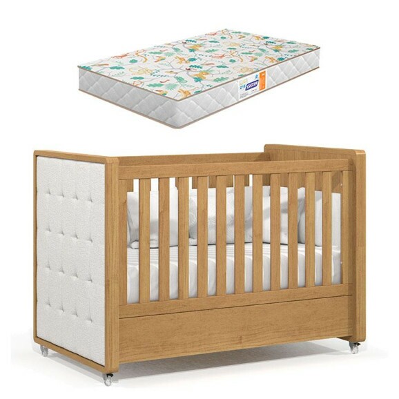 Berço Americano Tutto New Freijó com Capitonê New Boucle e Colchão Gazin - Matic
