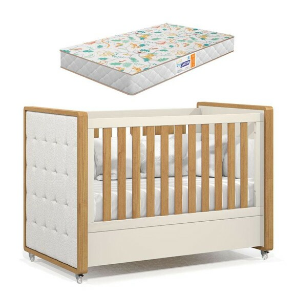 Berço Americano Tutto New Freijó Off White com Capitonê New Boucle e Colchão Gazin - Matic