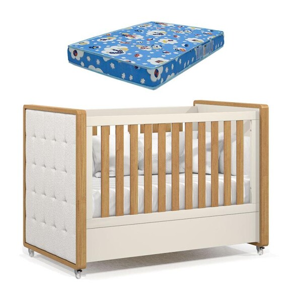 Berço Americano Tutto New Freijó Off White com Capitonê New Boucle e Colchão Ortobom - Matic