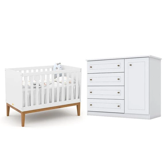 Conjunto infantil composto por Berço Americano Unique Branco Soft Eco Wood Matic e Cômoda Infantil Americano Branco HP Henn. O berço possui design moderno com acabamento Soft Eco Wood, estrutura resistente e estrado com regulagem de altura, garantindo conforto e segurança para o bebê. A cômoda oferece ótimo espaço para organização de roupas e acessórios, com visual clean e fácil de combinar. Ideal para um quarto de bebê funcional, elegante e aconchegante.