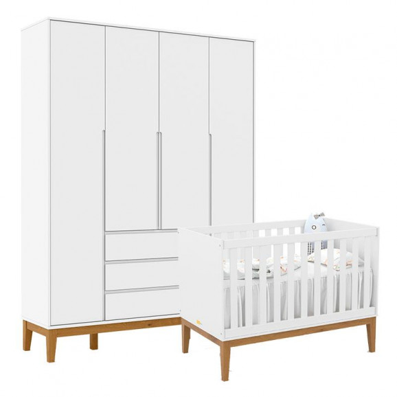 Berço Americano Unique e Guarda Roupa 4 Portas Nature Clean Branco Soft Eco Wood – Matic