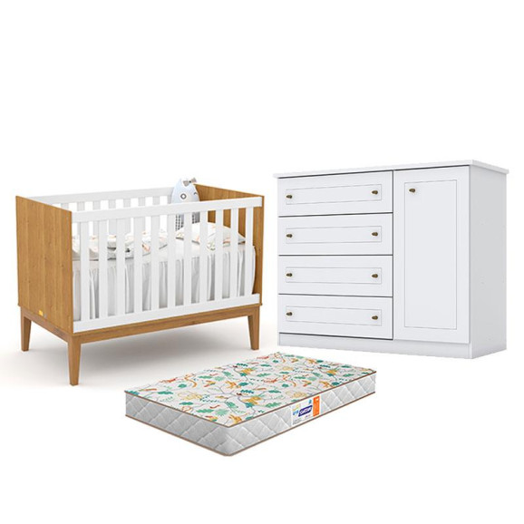 Conjunto infantil composto por Berço Americano Unique Freijó Branco Soft Eco Wood Matic e Cômoda Infantil Americano Branco HP Henn. O berço apresenta design moderno com acabamento Soft Eco Wood e detalhes em Freijó, estrutura resistente e estrado com regulagem de altura, garantindo conforto e segurança para o bebê. A cômoda oferece ótimo espaço para organização de roupas e acessórios, com visual clean e fácil de combinar. Ideal para compor um quarto de bebê funcional, elegante e aconchegante. Acompanha Colhcão Gazin.