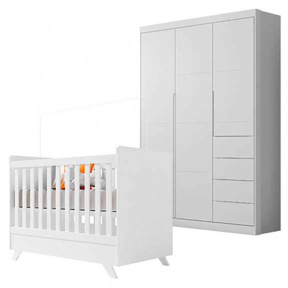 Berço Americano Vitória e Guarda Roupa Infantil Eloá Branco Acetinado – Phoenix Baby