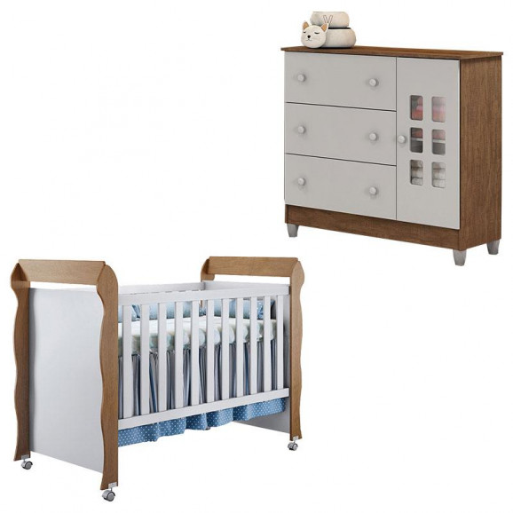 Berço Mirelle e Cômoda Mariah Branco Acetinado Amadeirado - Carolina