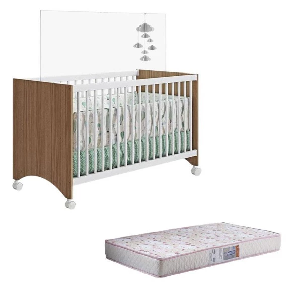 Berço Nacional Gutti Amadeirado Acetinado com Colchão Gazin – Móveis Estrela