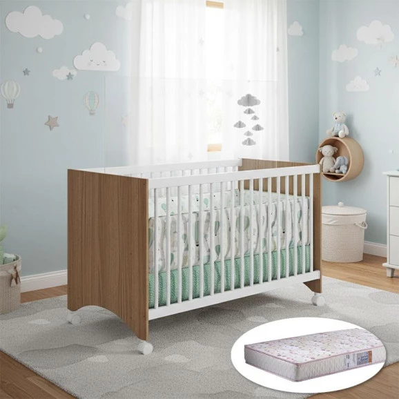 Berço Nacional Gutti Ambiente Amadeirado Acetinado com Colchão Gazin – Móveis Estrela