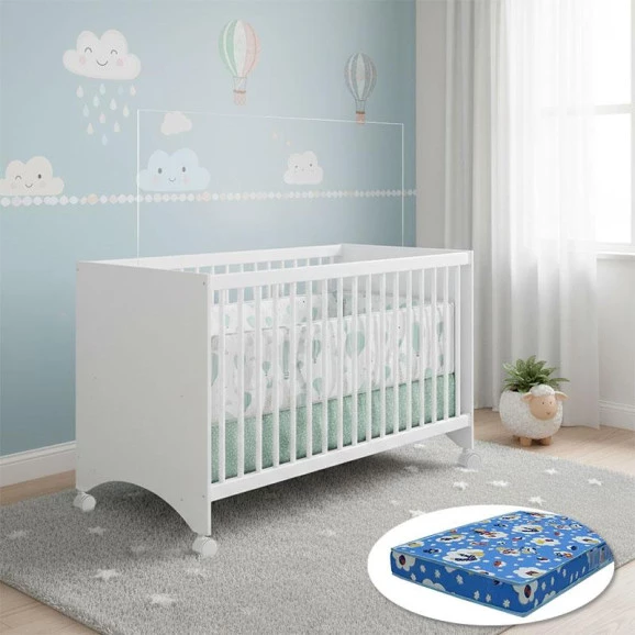 Decore o cantinho do bebê com um móvel que irá garantir conforto e noites tranquilas! Apresentamos o Berço Nacional Gutti, desenvolvido pela Móveis Estrela. Acompanha suporte para mosquiteiro, colchão Ortobom na medida 60x130cm, possui 2 regulagens de altura e suporta até 25kg. Ainda conta com um design minimalista e moderno, Kit rodízios, acabamento em pintura uv e estrutura em MDP resistente e de alta durabilidade, garantindo a utilização por muito mais tempo. Confira mais detalhes abaixo, compre com a gente e receba no conforto de sua casa!