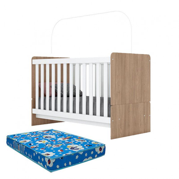 Berço Nacional Labirinto Rústico Branco com Colchão Ortobom – Henn