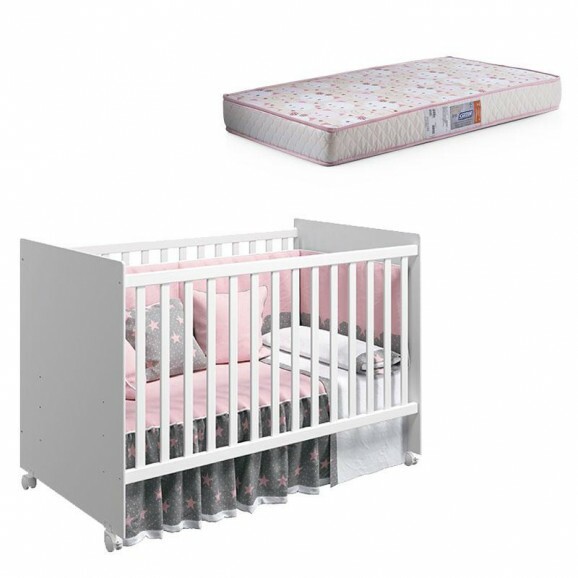 Berço Nacional Mel Branco Brilho com Colchão Gazin – Reller