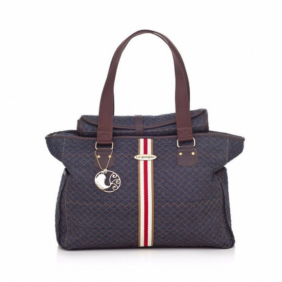 Bolsa Maternidade grande, com 2 bolsos laterais. Possui 2 divisorias internas. Acompanha trocador e pingente.