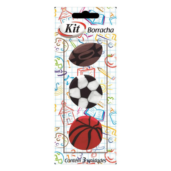 Borracha Escolar Divertida Esporte 3 Unidades - Kit