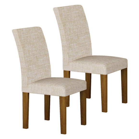 Cadeira para Mesa de Jantar Napoli MDF Kit 2 Peças Freijó Linho Palha – Leifer Móveis