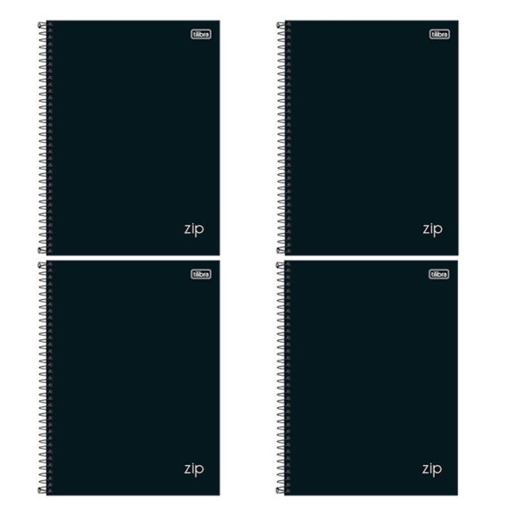 Caderno Espiral Universitário Zip 80 Folhas Preto 4 Unidades - Tilibra