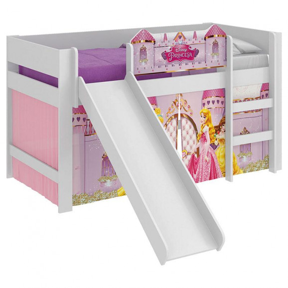 Cama Infantil Princesas Disney Play com Escorregador Branco - Pura Magia