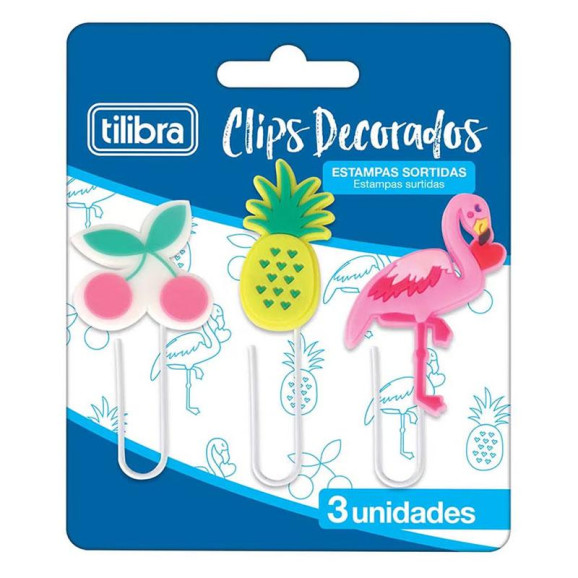 Clips Decorados para Papel 3 Unidades Branco - Tilibra