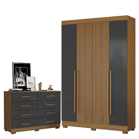 Cômoda 2014148 e Guarda Roupa Solteiro 2030240 Atacama Grafite - Aramóveis