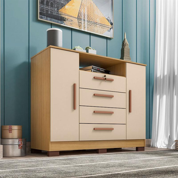 Cômoda Ambiente Madri 4 Gavetas 2 Portas Carvalho Americano Off White - Incorplac