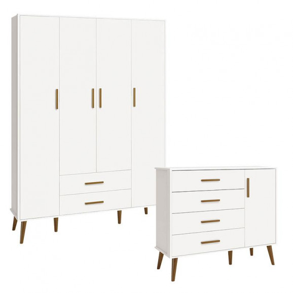 Cômoda com Porta e Guarda Roupa Infantil 4 Portas Isis Branco Acetinado - Reller