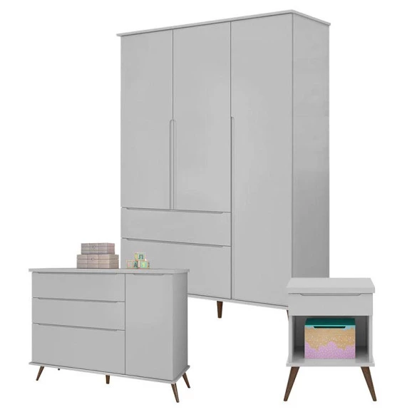 Cômoda e Guarda Roupa com Mesa de Apoio Alice Cinza Acetinado - Phoenix baby