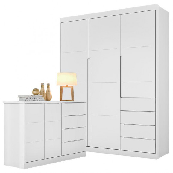 Cômoda e Guarda Roupa Infantil Blenda Branco Acetinado - Phoenix Baby