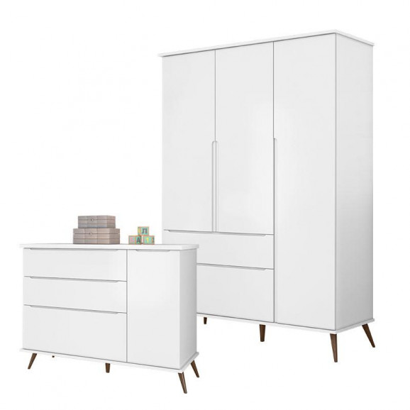A cômoda e o Guarda Roupa infantil para quarto do bebê modelo retro com qualidade, lindo design e bom preço você encontra aqui, apresentamos mais uma linda opção Cômoda e Guarda Roupa Infantil Retro Alice Branco Acetinado com pés amadeirados, com amplo espaço você vai deixar todas as roupas e acessórios do seu bebê organizados com total conforto e comodidade confira!