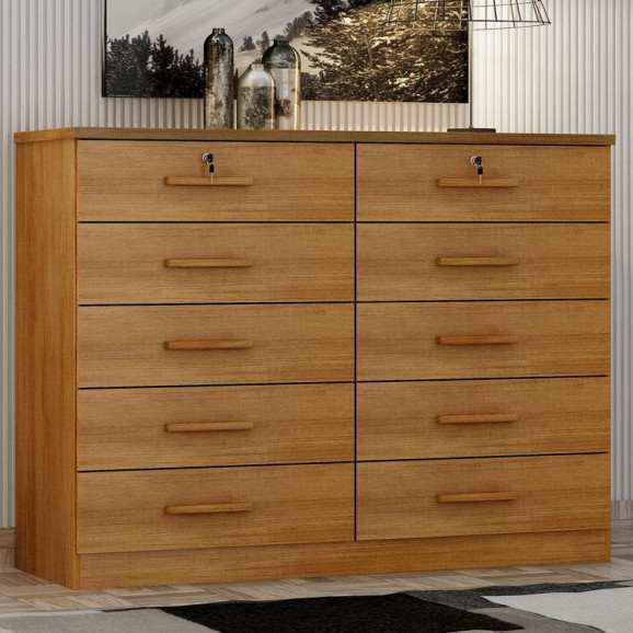 Precisando de uma cômoda para ter mais praticidade no seu dia? Apresentamos a linda cômoda gaveteiro da linha Milão, possui 10 gavetas sendo 2 delas com chave proporcionando amplo espaço para organizar itens de sua preferência. Os materiais de fabricação são de alta qualidade em MDP/MDF garantindo durabilidade e resistência. As gavetas são esquipadas com corrediças telescópicas garantindo mais qualidade e suavidade ao manusear. Não perca mais tempo venha aproveitar e garantir já a sua!