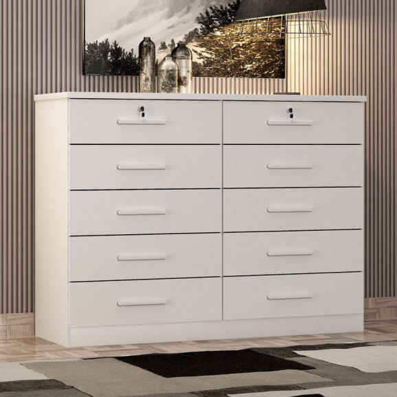 Precisando de uma cômoda para ter mais praticidade no seu dia? Apresentamos a linda cômoda gaveteiro da linha Milão, possui 10 gavetas sendo 2 delas com chave proporcionando amplo espaço para organizar itens de sua preferência. Os materiais de fabricação são de alta qualidade em MDP/MDF garantindo durabilidade e resistência. As gavetas são esquipadas com corrediças telescópicas garantindo mais qualidade e suavidade ao manusear. Não perca mais tempo venha aproveitar e garantir já a sua!