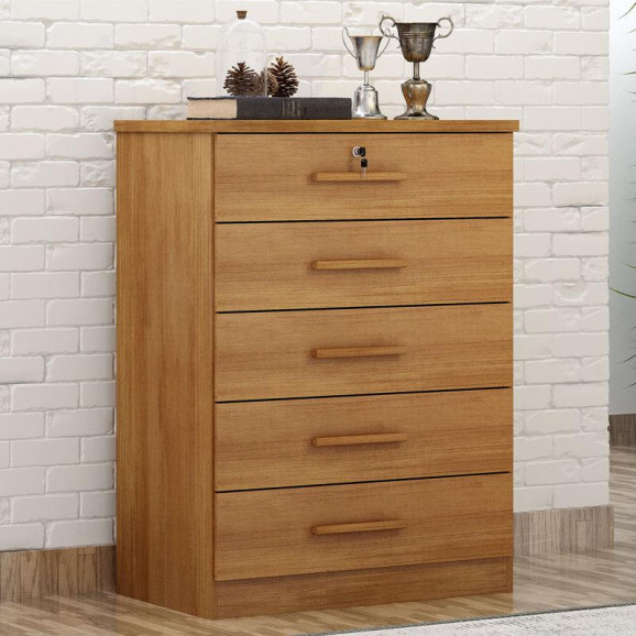 Esta precisando de uma cômoda? Apresentamos a linha Suiça, uma cômoda com 5 gavetas sendo uma delas equipada com chave para garantir mais segurança aos seus pertences. Fabricada em MDP/MDF garantindo qualidade e resistência. Seus puxadores amadeirados agregam charme e sofisticação, tornando-a uma peça versátil para complementar a decoração do seu quarto com estilo e praticidade. Venha aproveitar e garantir já o seu!