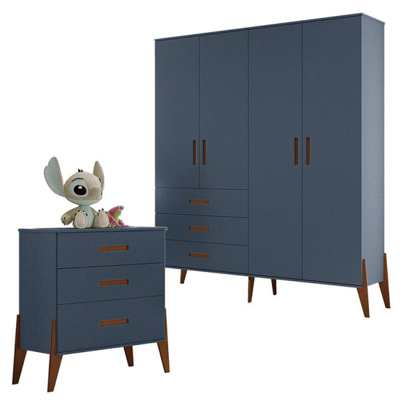 Mamãe está na hora de escolher os móveis para o quartinho do bebê, e está em dúvida de qual modelo escolher, apresentamos esse maravilhoso e especial conjunto composto por Cômoda 3 Gavetas e Guarda Roupa Infantil 4 Portas da linha Emilly, conta com amplo espaço interno para maior organização e praticidade no seu dia a dia, desenvolvido pela Canaã Baby com todo cuidado e carinho para você, fabricados com materiais de excelentes qualidades, para maior segurança durabilidade e resistência do móvel, possui um lindo e delicado design na cor Azul com pés na cor Magno proporcionando modernidade e tranquilidade ao ambiente. Adquira já o seu e se surpreenda, aproveite!