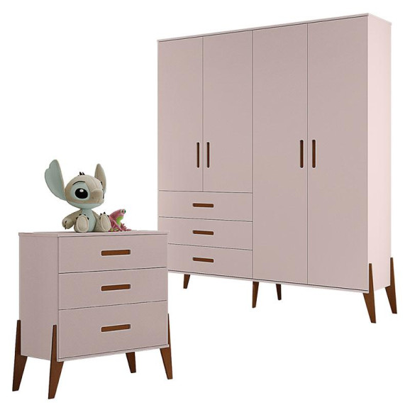 Mamãe está na hora de escolher os móveis para o quartinho do bebê, e está em dúvida de qual modelo escolher, apresentamos esse maravilhoso e especial conjunto composto por Cômoda 3 Gavetas e Guarda Roupa Infantil 4 Portas da linha Emilly, conta com amplo espaço interno para maior organização e praticidade no seu dia a dia, desenvolvido pela Canaã Baby com todo cuidado e carinho para você, fabricados com materiais de excelentes qualidades, para maior segurança durabilidade e resistência do móvel, possui um lindo e delicado design na cor Rose com pés na cor Magno proporcionando modernidade e tranquilidade ao ambiente. Adquira já o seu e se surpreenda, aproveite!