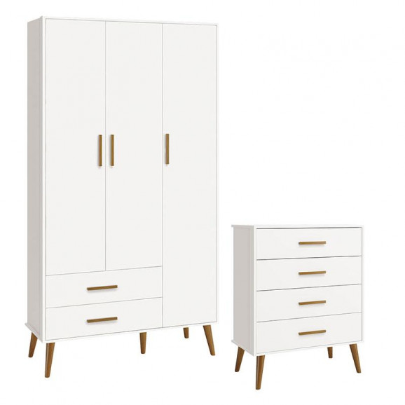 Cômoda Gaveteiro e Guarda Roupa Infantil 3 Portas Isis Branco Acetinado - Reller