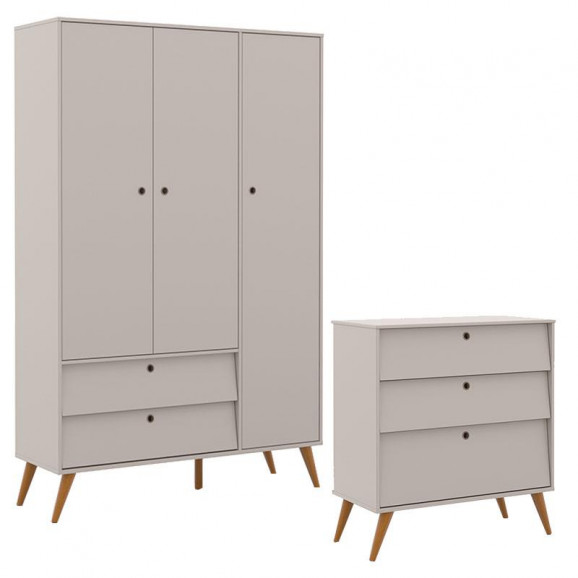Cômoda Gaveteiro e Guarda Roupa Infantil 3 Portas Retro Gold Cinza Eco Wood – Matic