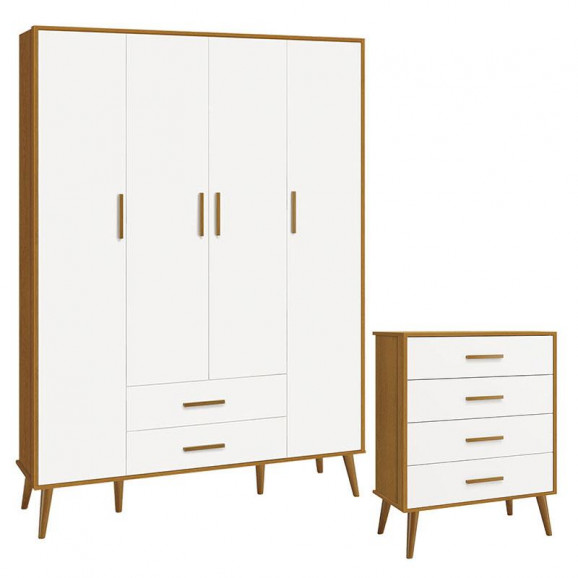 Cômoda Gaveteiro e Guarda Roupa Infantil 4 Portas Isis Branco Acetinado Savana - Reller