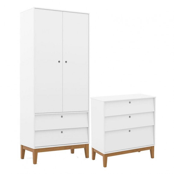 Cômoda Gaveteiro e Guarda Roupa Unique 2 Portas Branco Soft Eco Wood - Matic