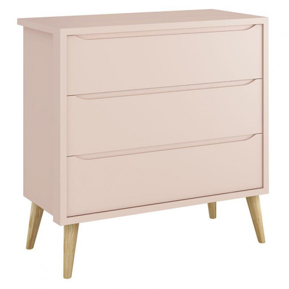 Cômoda Gaveteiro Infantil Theo Rosa com Pés Madeira Natural - Reller